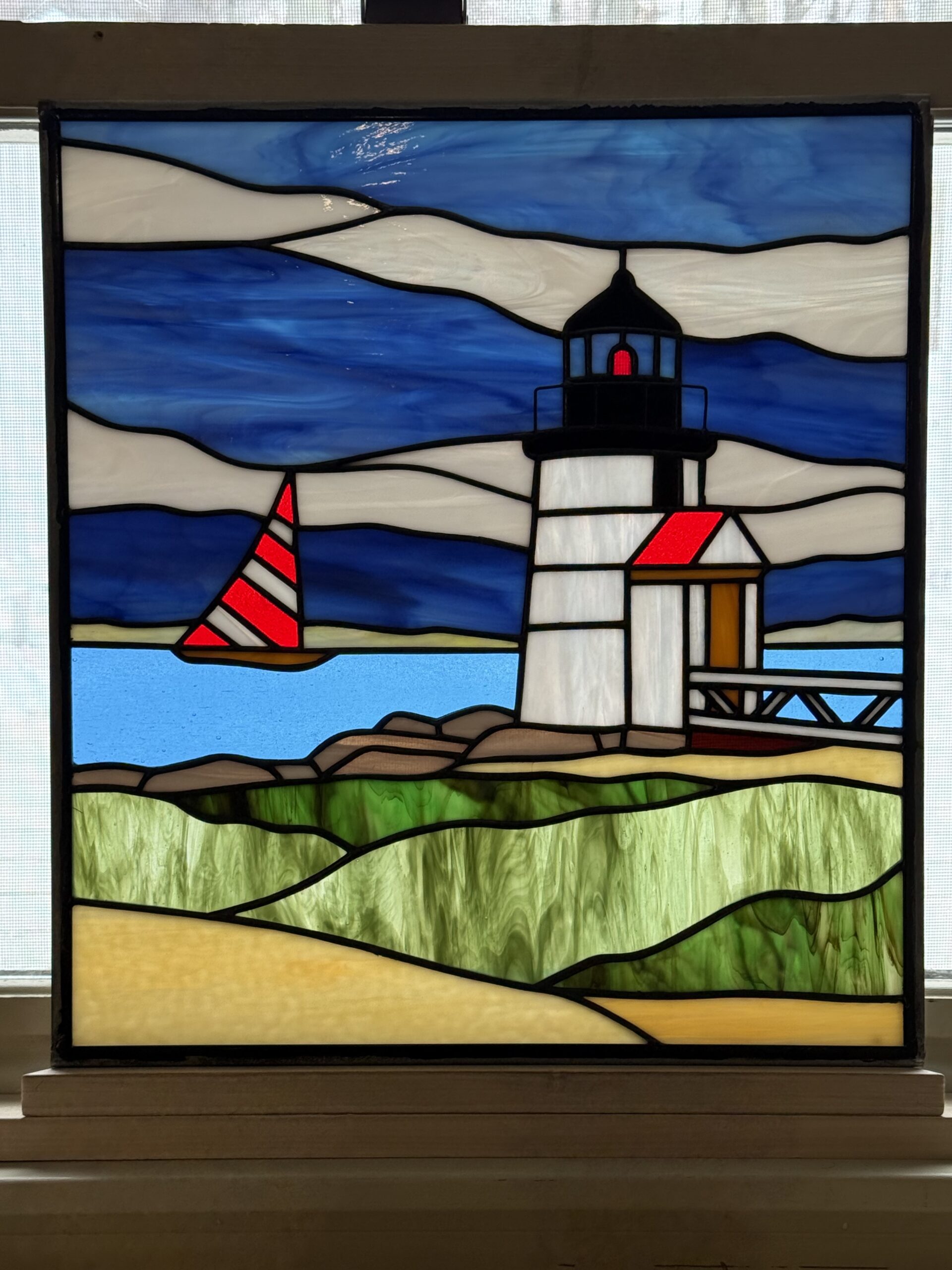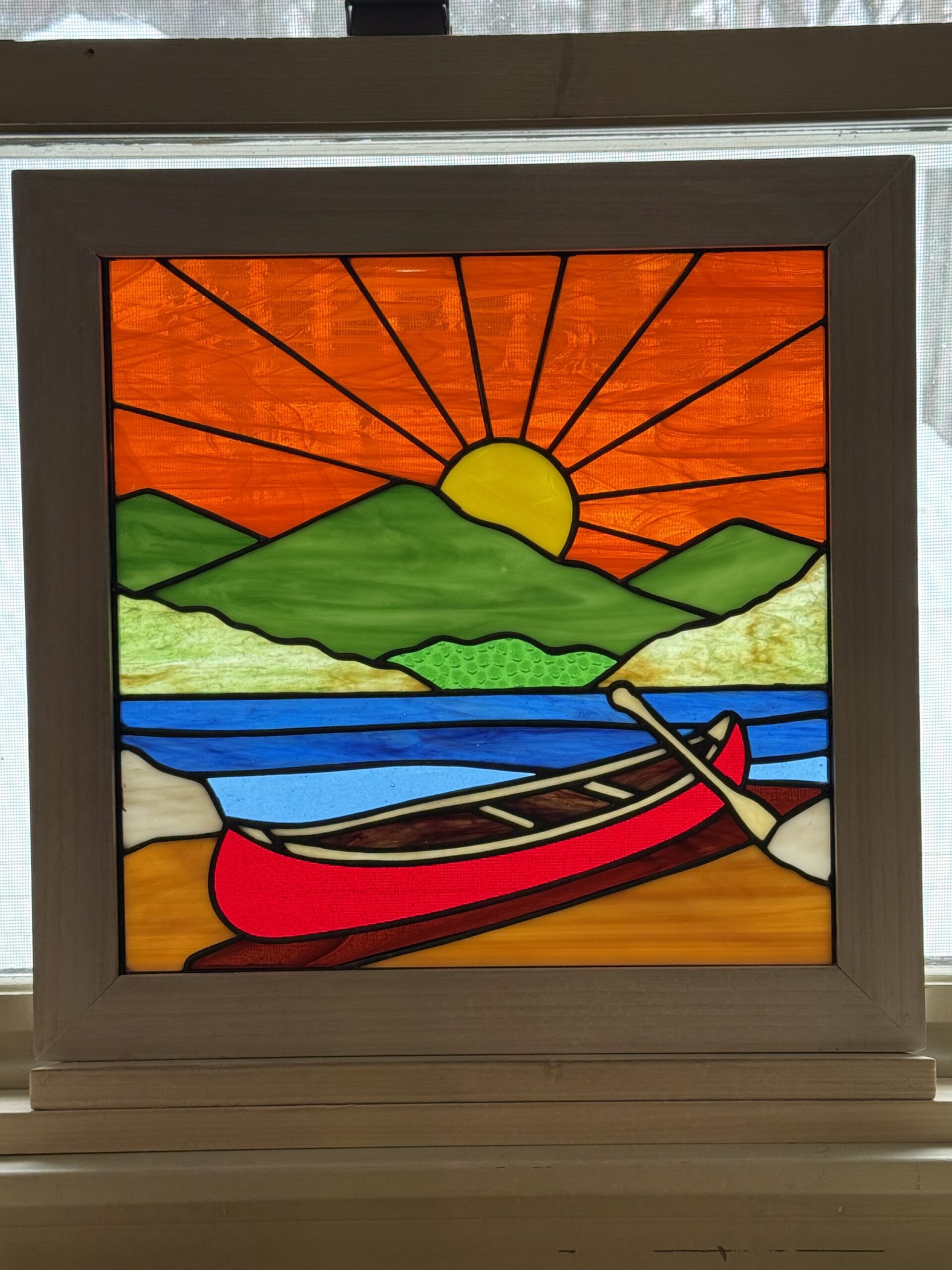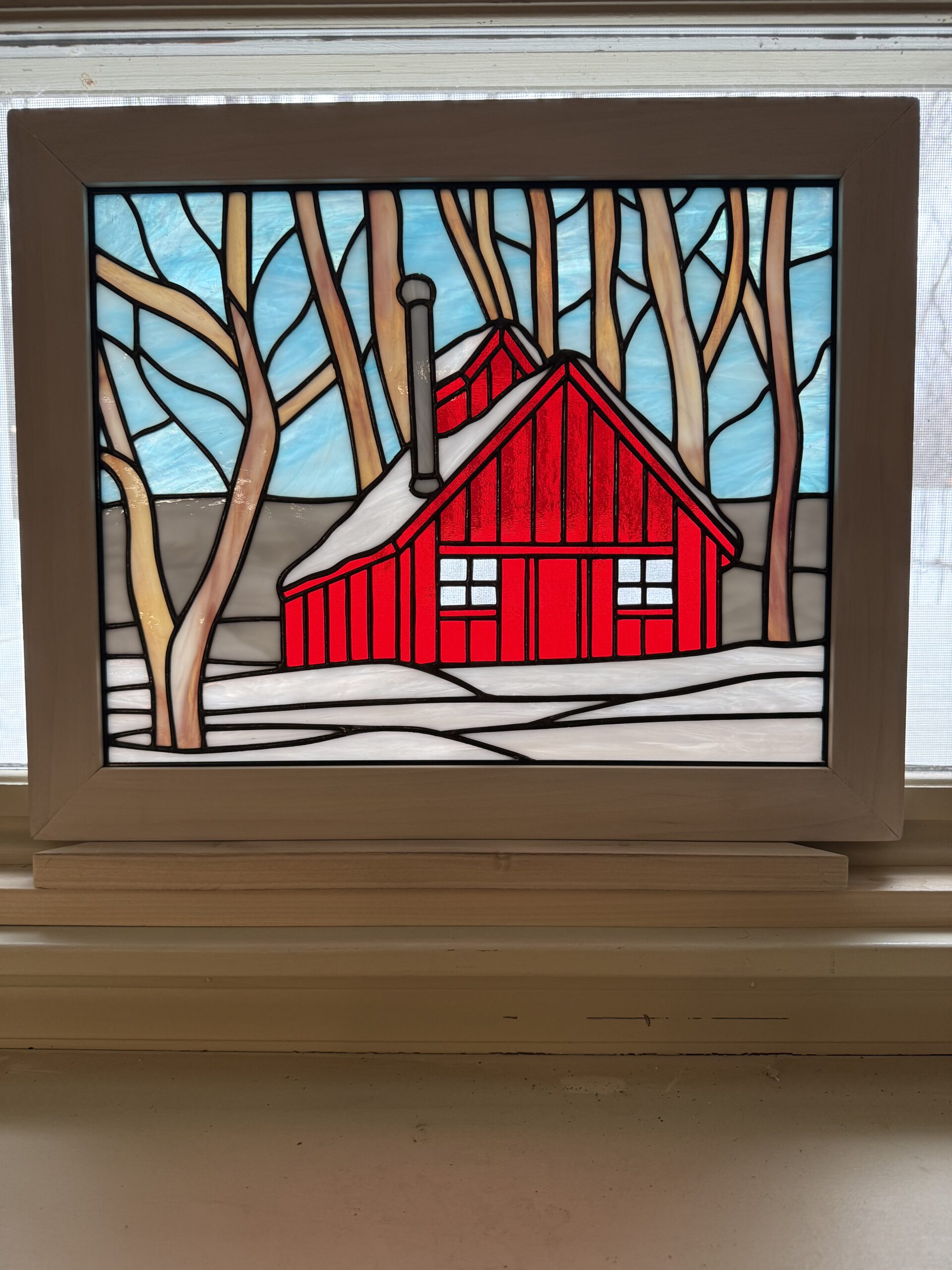 Village Green Glassworks located in Henniker, New Hampshire. This is where you’ll find hand-crafted wood framed original stained-glass panels, lightboxes, and suncatchers for your home. Take a look at some of the stained-glass projects recently completed.